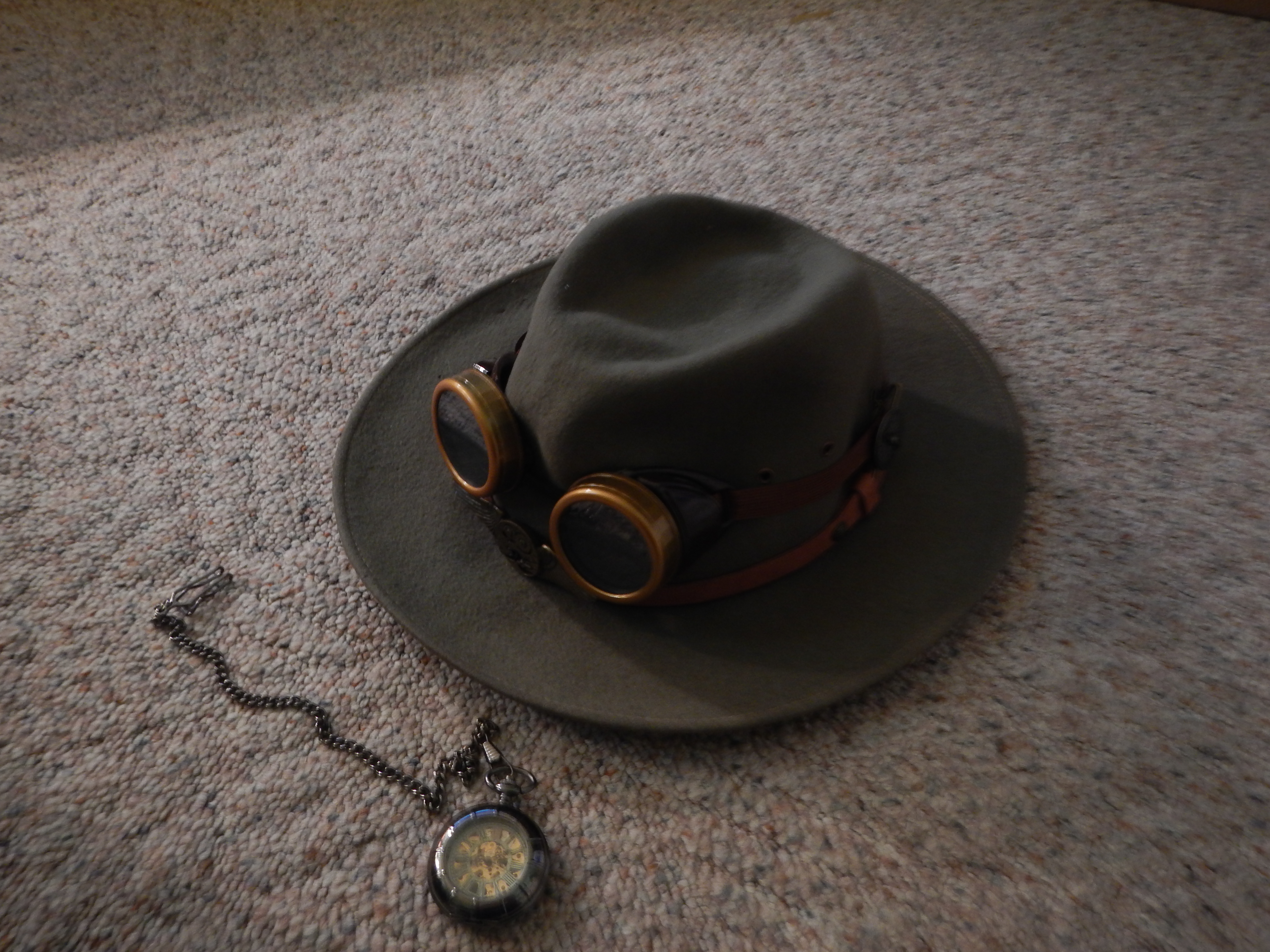 Salt City Steamfest was a blast. It’s been a long, long time since I’ve been to a convention of any kind, and this was my first steampunk con. A lot of great people, and some truly fantastic costumes. I was able at last to get hold of some steampunk headgear combined with some paraphernalia to give it some character—it reminds me of Sam Elliott’s Texan aviator Lee Scoresby in The Golden Compass: