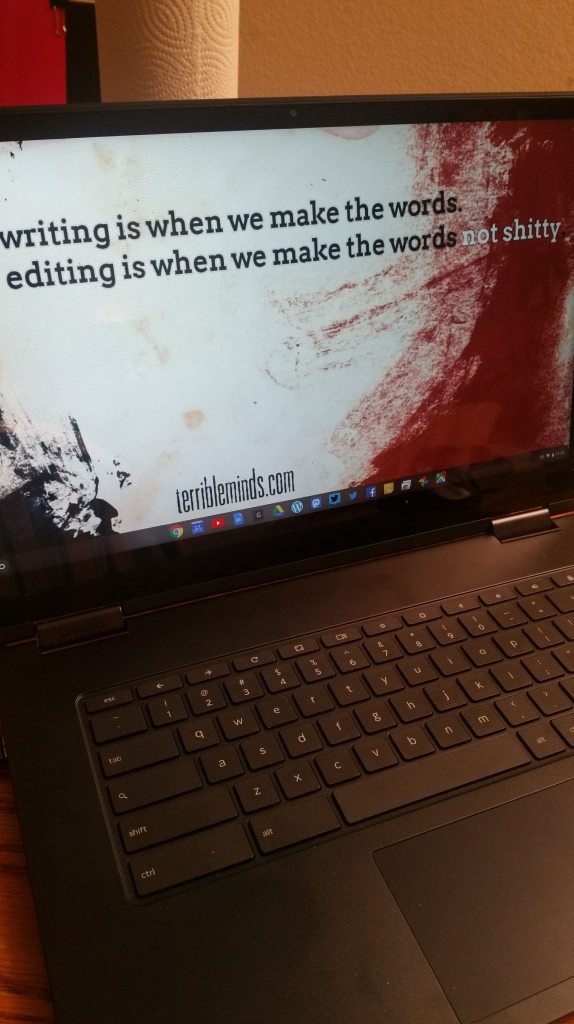 There’s very little actually wrong with my old Acer. As I said, it’s getting on for three years old now and in all that time it’s given me zero problems. Unlike other tech (such as my phone) the batteries still hold charge well; I can still stream Netflix, etc. for ten hours straight on one full charge. It doesn’t crash. Ever. Despite a couple of mishaps – as evidenced by a scratch or two – the case (plastic) is still in one piece. Hinges are still solid. In fact the only physical problem with it is that the left Shift key is a little bit sticky. Overall, given that it only cost $180 I’ve been really pleased with it and I’d certainly recommend it to anyone looking for a low-cost entry-level Chromebook. (They’re still available and these days cost $150 or less.)